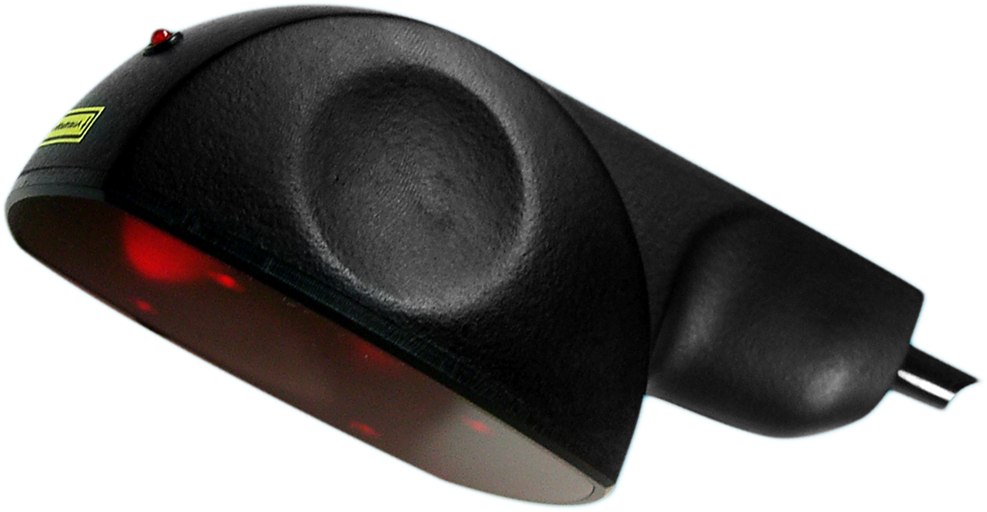 - Sichtbarer Behandlungsbereich beim Laserkamm und Flächenlaser ausgeleuchtet mit 4 intensiv strahlenden Rotlicht-Dioden